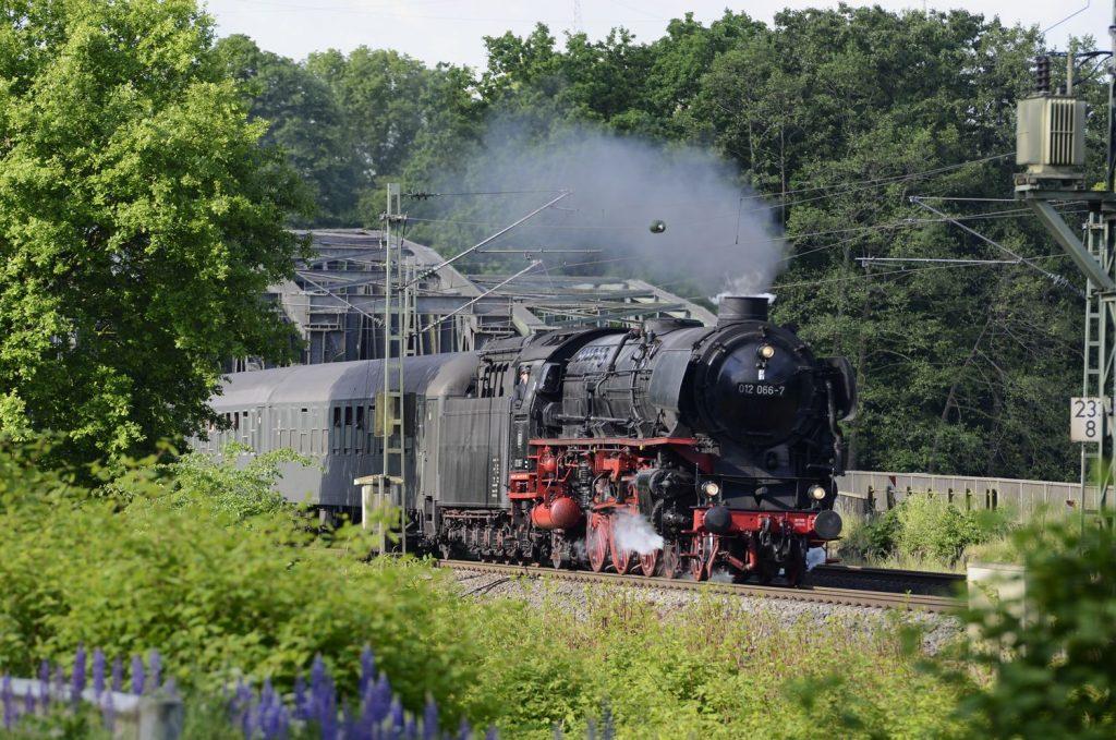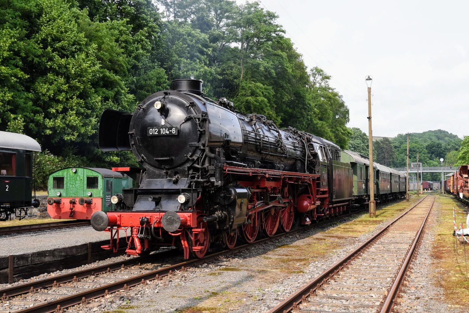 Wie schon im Jahr 2015, zum 40-jährigen Jubiläum, gelang es der Arbeitsgemeinschaft Westfalendampf auch zum 50-jährigen Gedenktag, einen Sonderzug mit einer 012 auf die Strecke zu bekommen.