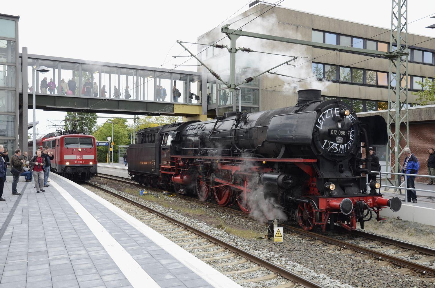 Am 31. Mai 1975 verkehrten die letzten planmäßig mit Dampfloks bespannten Schnellzüge auf Gleisen der Deutschen Bundesbahn. Damit endete auch der Einsatz der Baureihe 012 auf ihrem letzten Refugium, der Emslandstrecke zwischen Rheine und Norddeich-Mole.