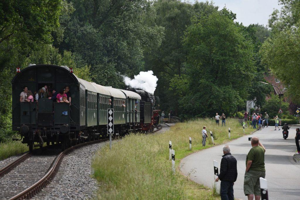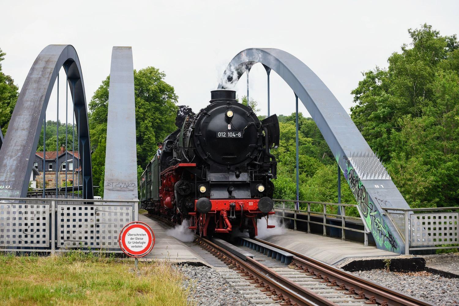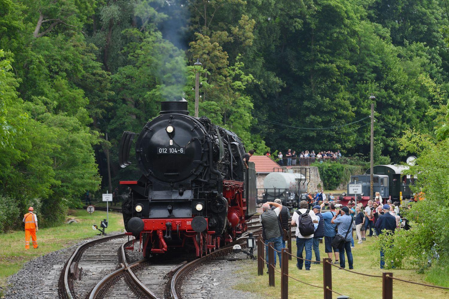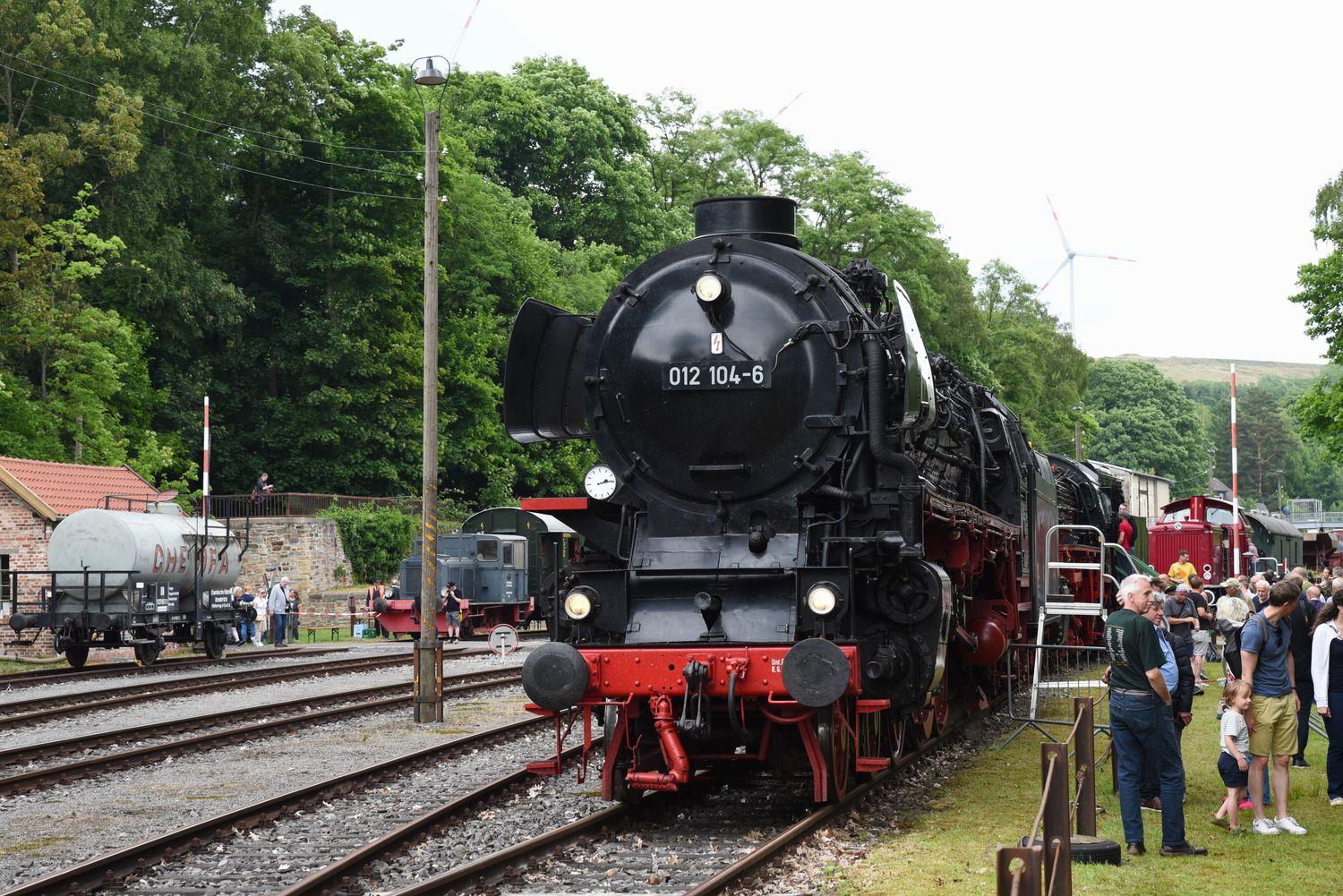 2015 war es mit 012 066 eine der beiden am 31. Mai 1975 noch eingesetzten Maschinen, 10 Jahre später konnte 012 104 zeigen, was mit dieser Baureihe immer noch möglich ist. Das lebendige Erinnerungskultur nach einem halben Jahrhundert in dieser Form möglich war, ist unzähligen Stunden persönlichen Einsatzes einer am Ende überschaubaren Zahl von engagierten Menschen zu verdanken. Natürlich aber auch kleinen und großen Finanzspritzen und schließlich zahlenden Fahrgästen in den Zügen – Und die gab und gibt es reichlich, trotz auch in dieser Branche gestiegener Preise und der auch für die Fahrgäste oft langen Tage. Dass der heutige Betreiber der 012 104 „Faszination Dampf“ heißt, ist absolut gerechtfertigt und das zeigte sich bei den drei Sonderfahrten von Westfalendampf Ende Mai 2025 im Zuspruch des Publikums, ob im Zug oder als Zuschauer entlang der Strecke.