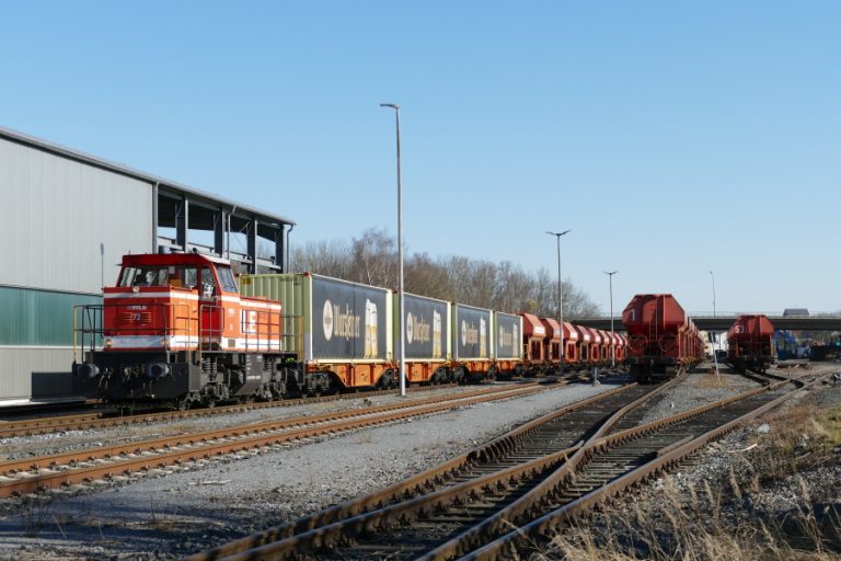 Nachdem in 2021 der Ganzzugverkehr von Warstein nach Großbeeren (bei Berlin) für eine Sauerländer Brauerei eingestellt wurde, verkehrt zu dieser Destination zukünftig eine Wagengruppe im Einzelwagenverkehr. Die Übergabe an DB Cargo erfolgt in Neubeckum. Der erste Transport fand am 8.März 2022 statt. Lok 72 oblag die Beförderung als Beigabe des Steinzuges Gdg 22 auf dem WLE-Streckennetz von Warstein nach Neubeckum (hier zu sehen zwischen Wadersloh und Diestedde sowie im Bahnhof Beckum). Fotos: Matthias Forthaus