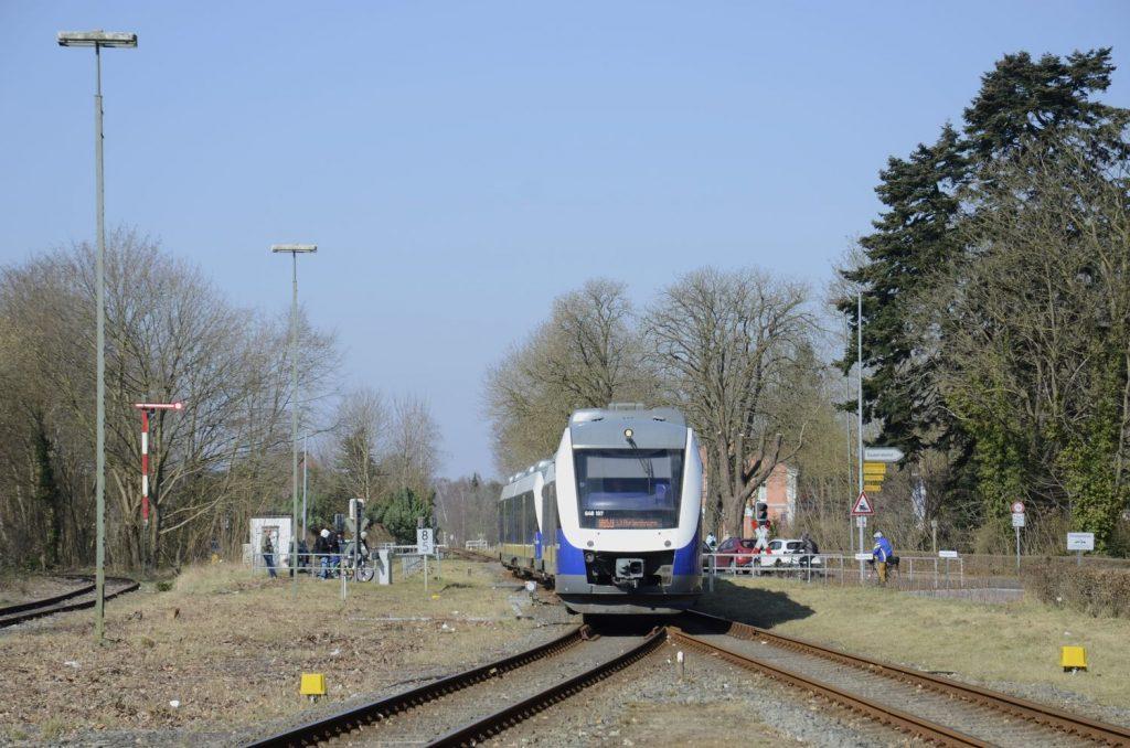 In Varel stieg unser Gastgeber Jens-Uwe zu, und nach Umstieg in Sande wurde die neue Ortsumgehung im Zuge der Anbindung des Jade-Weser-Ports befahren, die auch den Verkehr nach Esens aufgenommen hat. Die planmäßige Zugkreuzung in Schortens-Heidmühle wurde genutzt, um den Gegenzug nach Wilhelmshaven zu erreichen.
