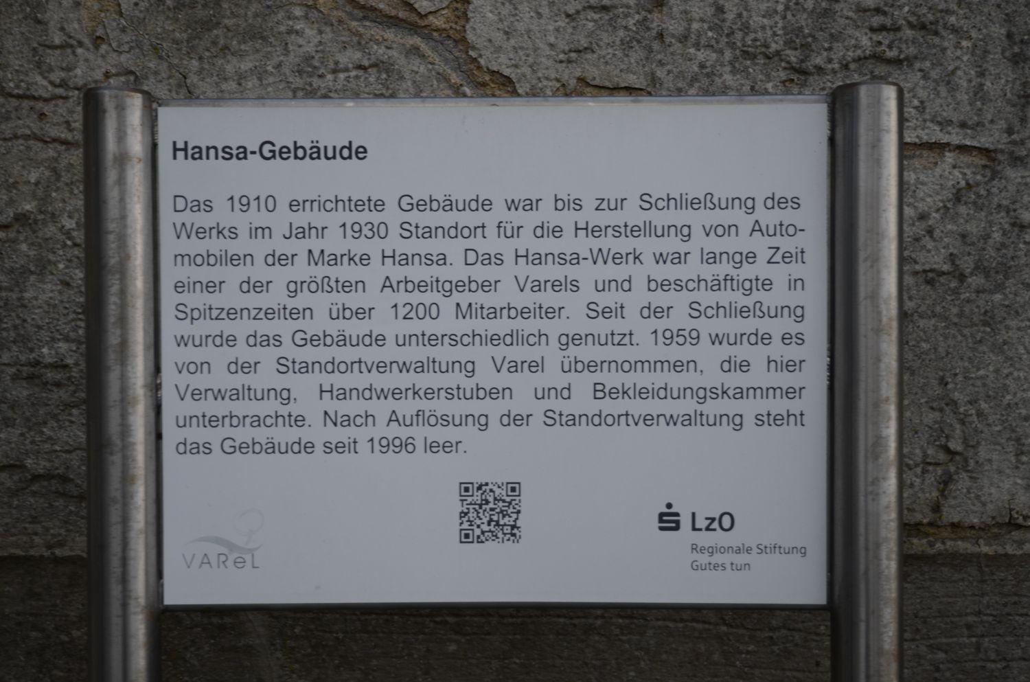 Ein kleiner Ausflug in die Industriegeschichte Varels: Das „Hansa-Gebäude“ von 1911 erinnert an einen der einst größten Arbeitgeber im Ort, die Hansa-Werke, die in Varel mehr als 10.000 Autos gebaut haben