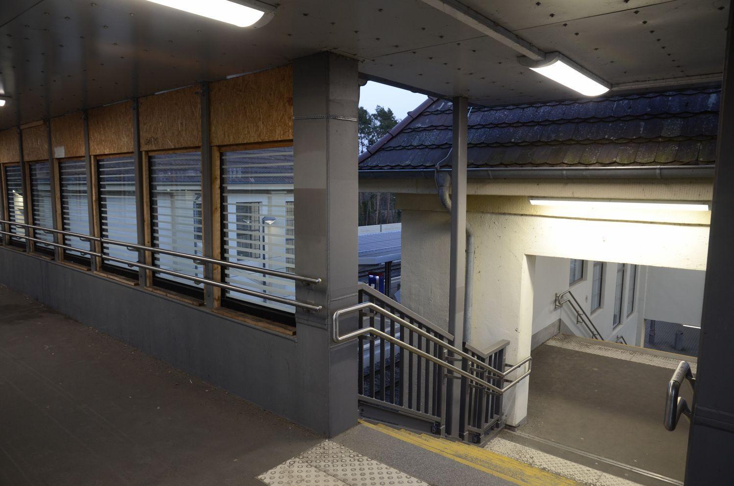 Im Rahmen der Elektrifizierung der Bahnstrecke Oldenburg – Wilhelmshaven musste für die denkmalgeschützte Fußgängerbrücke im Bahnhof Varel eine Lösung gefunden werden, da ihr Überbau zu niedrig für die Fahrleitung war. Herausgekommen ist eine recht ansprechende Lösung, die den historischen Treppenaufgängen einen komplett neuen Übergang samt Aufzügen an die Seite gestellt hat.