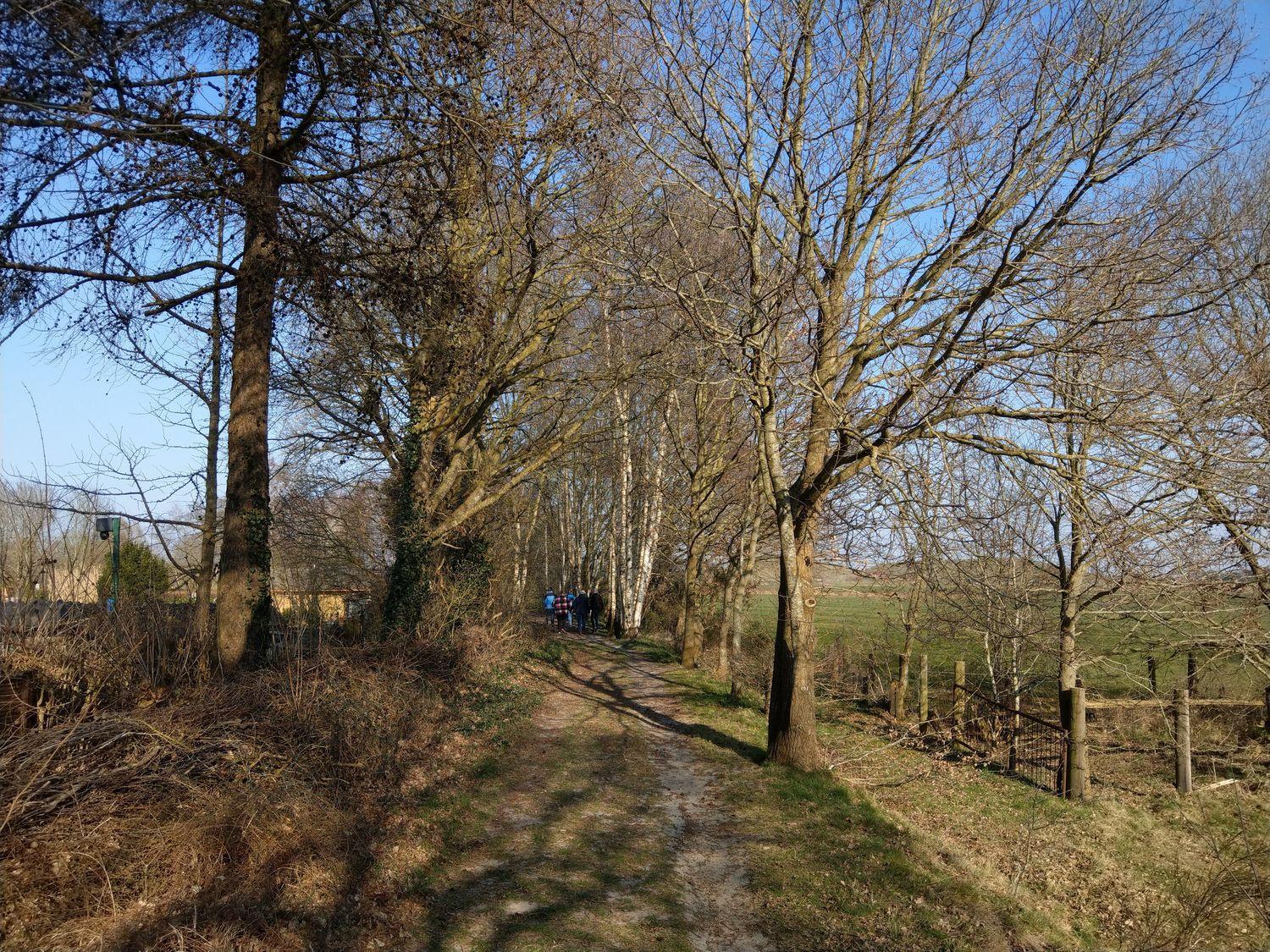 In einem langgezogenen „S“ verläuft die Trasse der früheren Vareler Hafenbahn über etwa 1,5 km bis zum heute noch gewerblich und touristisch genutzten Hafenbecken am Jadebusen.