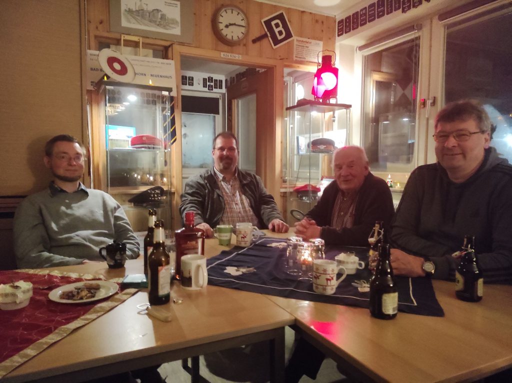 Nach zwei Jahren Abstinenz wegen Corona gab es endlich wieder eine Weihnachtsfeier im Stellwerk Of. In weihnachtlicher Stimmung trafen sich einige Mitglieder am Samstag, 17.12.2022 ab 16:00 Uhr, um gemeinsam eine gemütliche Zeit zu verbringen, zu fachsimpeln und auch einfach nur zu erzählen, wie es einem in den letzten zwei Jahren ergangen ist.