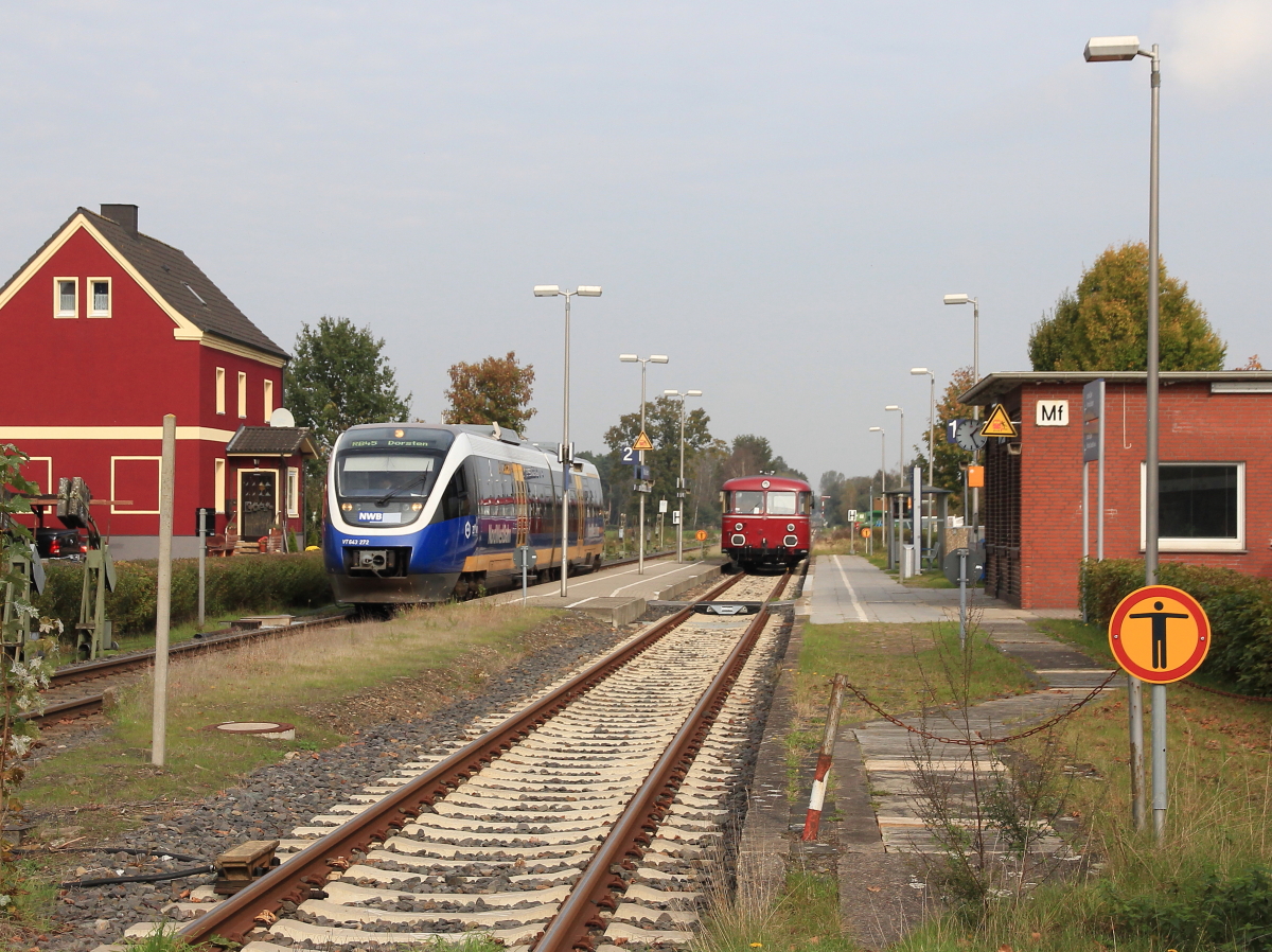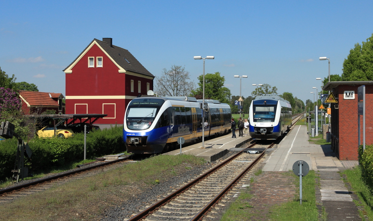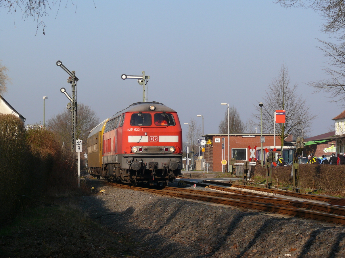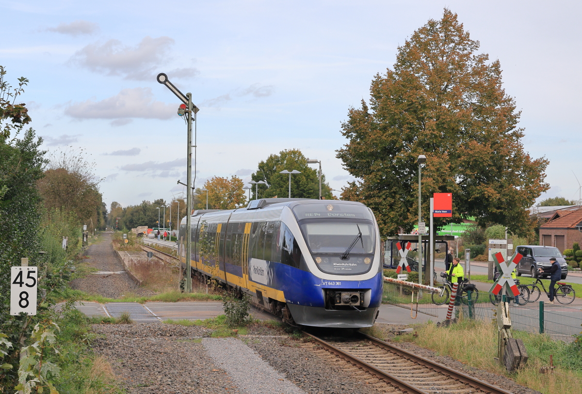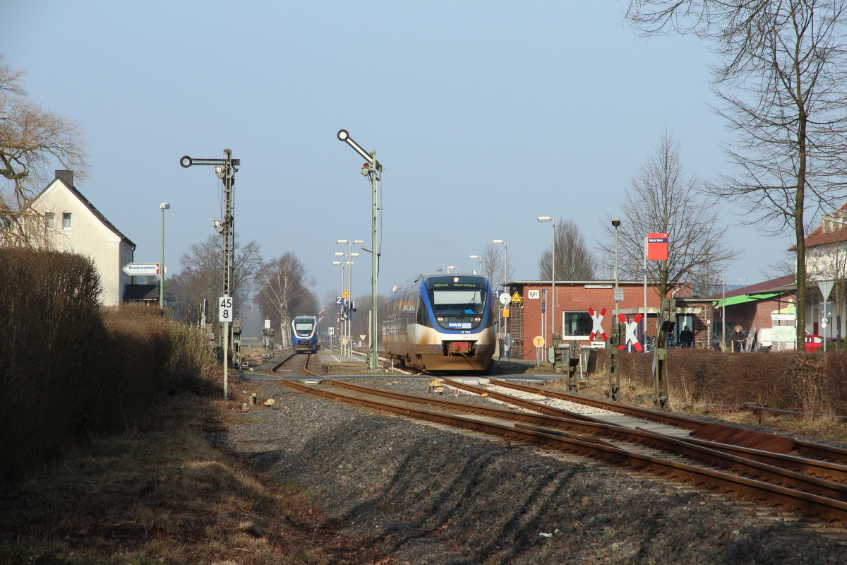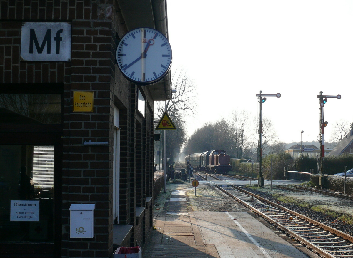 Die Bilder zeigen einige Züge der Rhein-Ruhr-Bahn am letzten Betriebstag an den südlichen Signalen Einfahrsignal „A“, sowie den dazugehörigen Einfahrvorsignal „a“. Ebenso ist die letzte mechanische Schranke am Bahnübergang „Am Kloster“ am letzten Betriebstag zu sehen. Die Bahnübergänge im Ortsbereich wurden modernisiert, der Zugang für Reisende zu den Zügen ist weiterhin über den jetzt betrieblich zum Haltepunkt umgewandelte Stelle möglich. Während des Umbaus fuhren keine Züge, der Zugverkehr wurde am Sonntag, 30.03.2025 wieder aufgenommen.